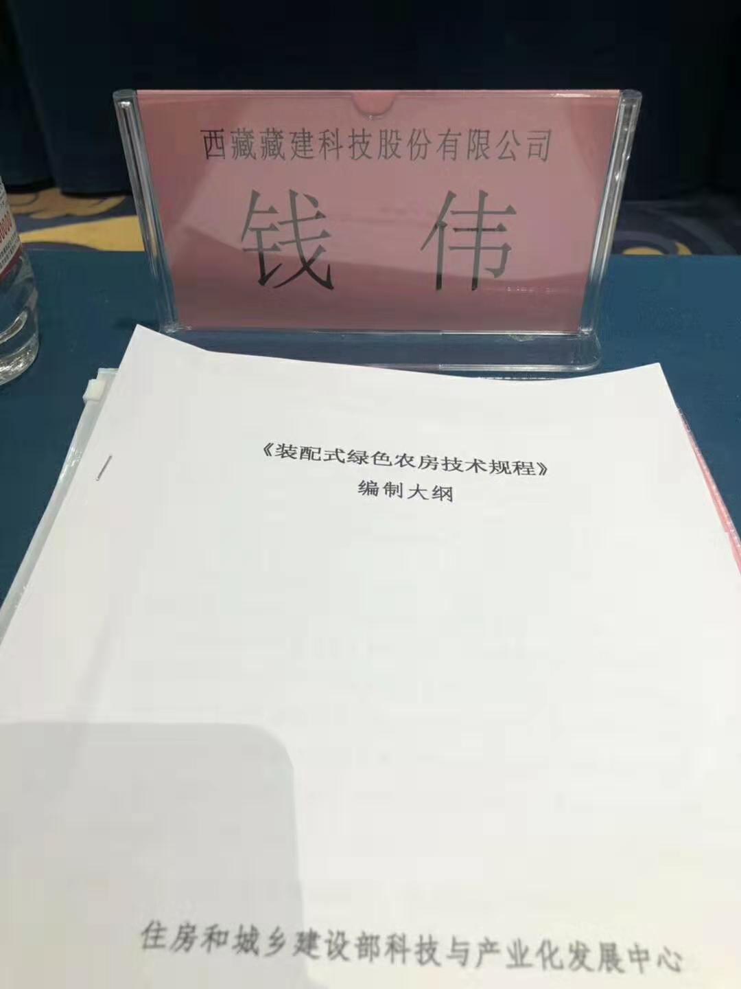 2019-01-132019年1月13日,住建部科技与产业化发展中心在京组织《装配式绿色农房技术规程》、《绿色建材评价标准》编制会议,西藏藏建科技股份有限公司受邀参加,总经理钱伟列席会议。